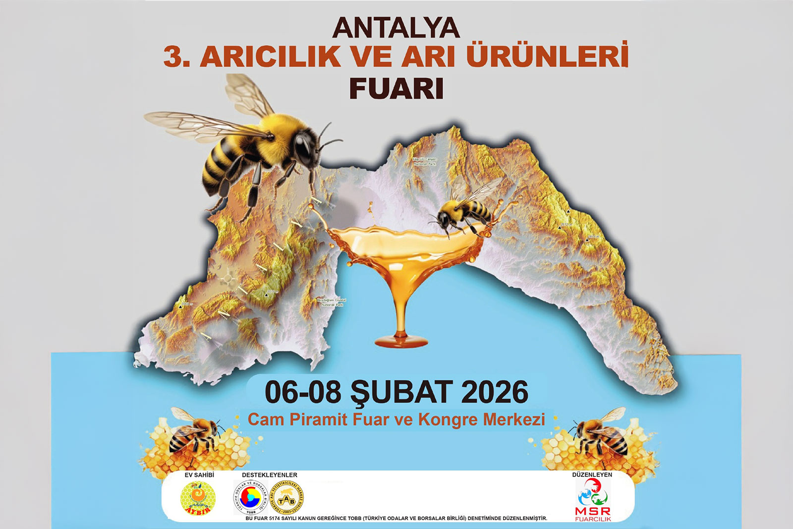 Arıcılık sektörünün en kapsamlı organizasyonlarından biri olan Antalya 3. Arıcılık ve Arı Ürünleri Fuarı, 6–8 Şubat 2026 tarihleri arasında Antalya Cam Piramit Fuar ve Kongre Merkezi’nde düzenlenecek.