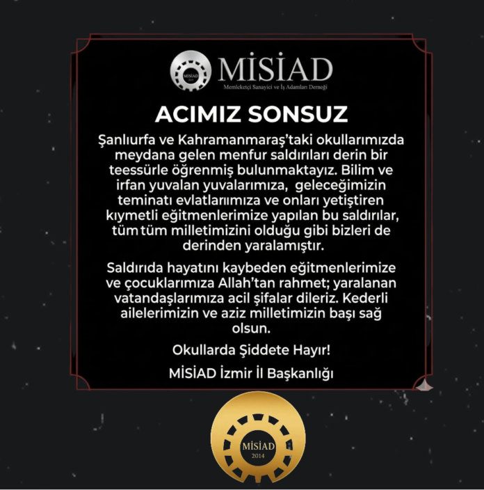 Türkiye GündemiSon Dakika MİSİAD İZMİR’DEN BAŞSAĞLIĞI MESAJI Yazar Vizyon Haberler - Nisan 16, 2026 0 7 FacebookTwitterPinterestWhatsApp
