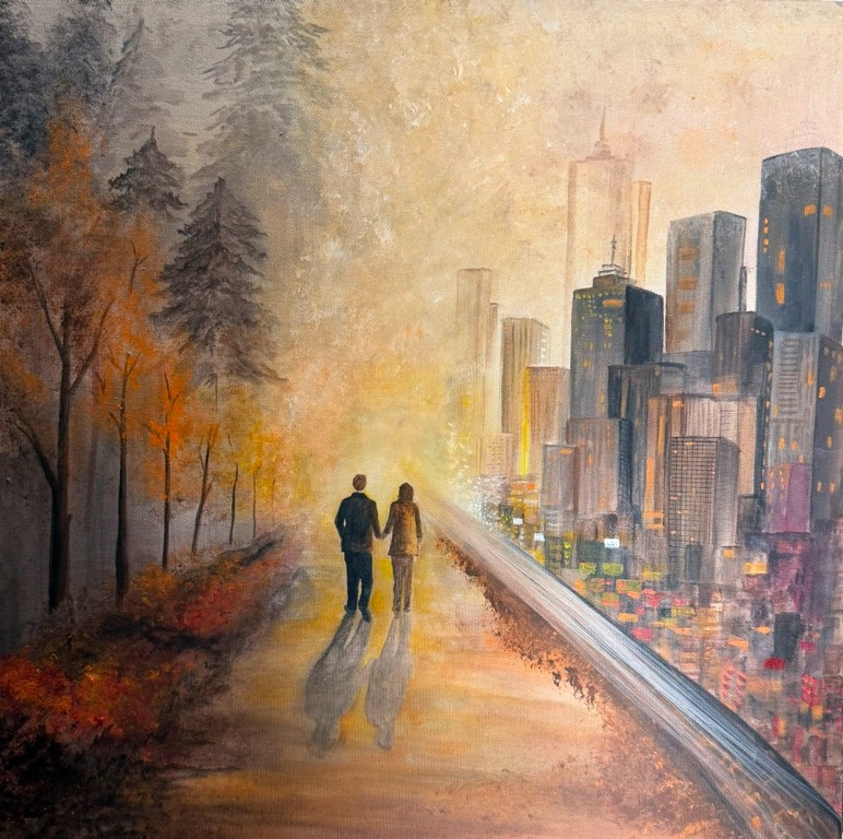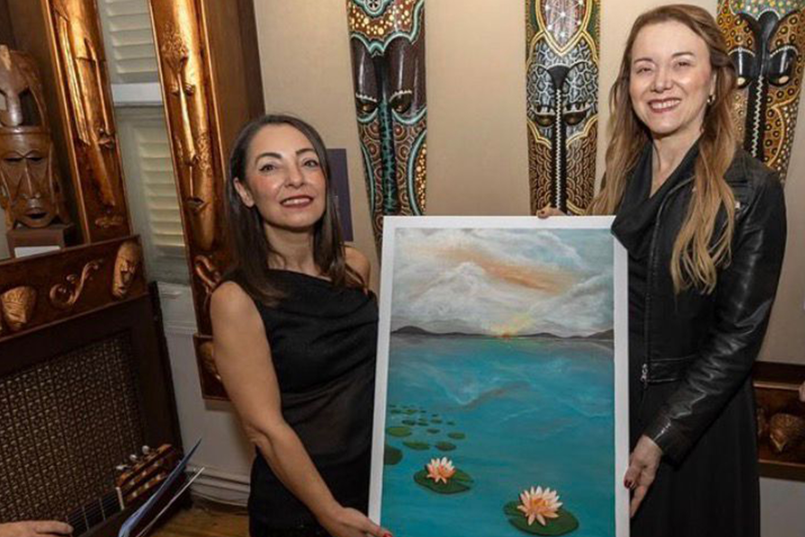 Yaklaşık 15 eserden oluşan sergide yağlıboya, akrilik ve karışık teknik çalışmalar yer alıyor. “Couples”,